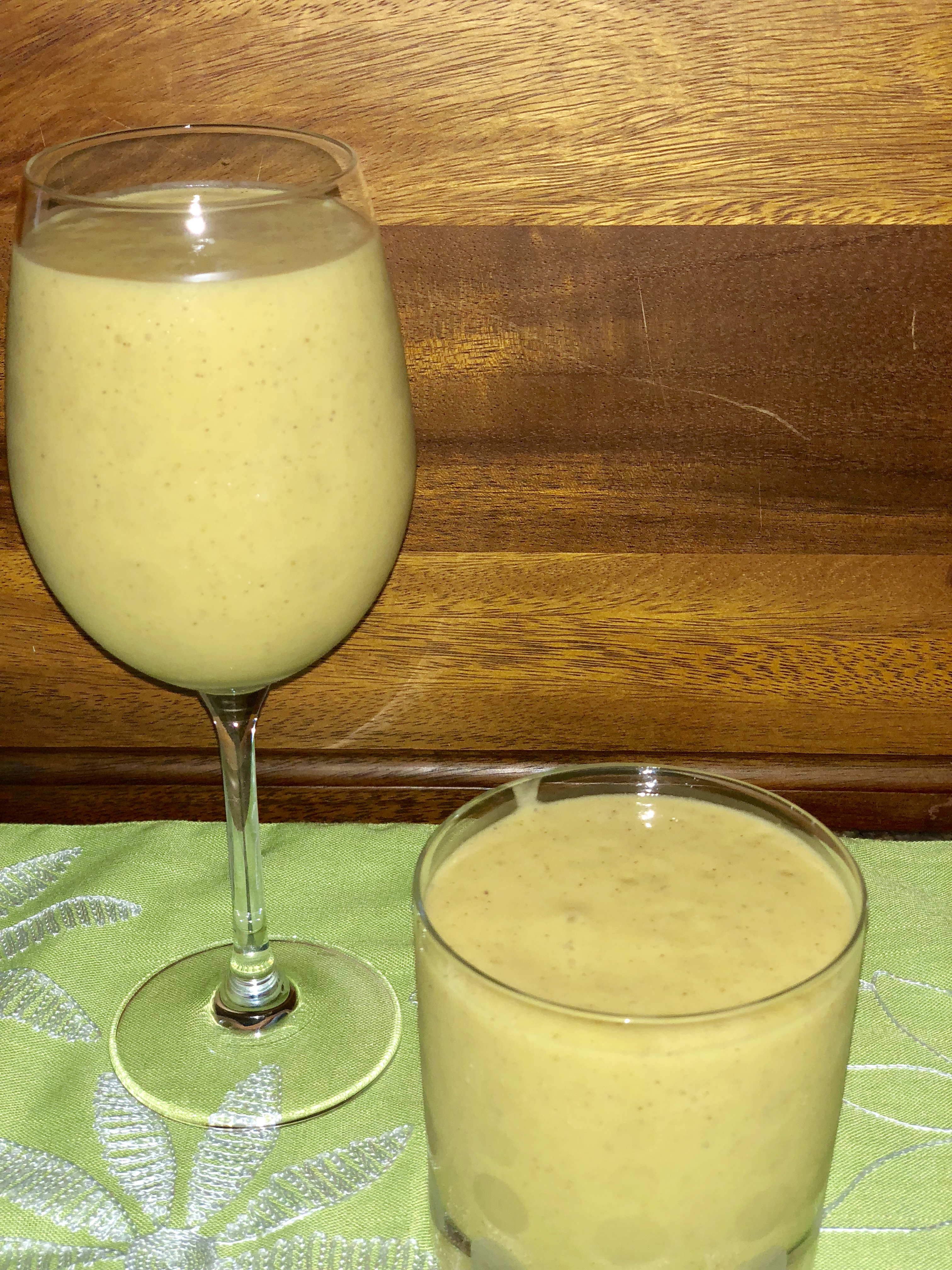 A healthy smoothie that contains a “Powerhouse ” of nutrients and vitamins. Using the fresh coconut water from a young coconut helps to reduce the calories, it has a nutty flavor and it’s loaded with potassium; not to mention electrolytes. The nutty taste complimented the fresh ripe mango that is loaded with vitamin C. I added kiwi for its refreshing flavor and most of all Kiwi is amongst one of the top nutrient dense fruits. I added a touch of nutty sweetness by using peanut butter. This is such a rich breakfast drink – it will keep you filled for hours.