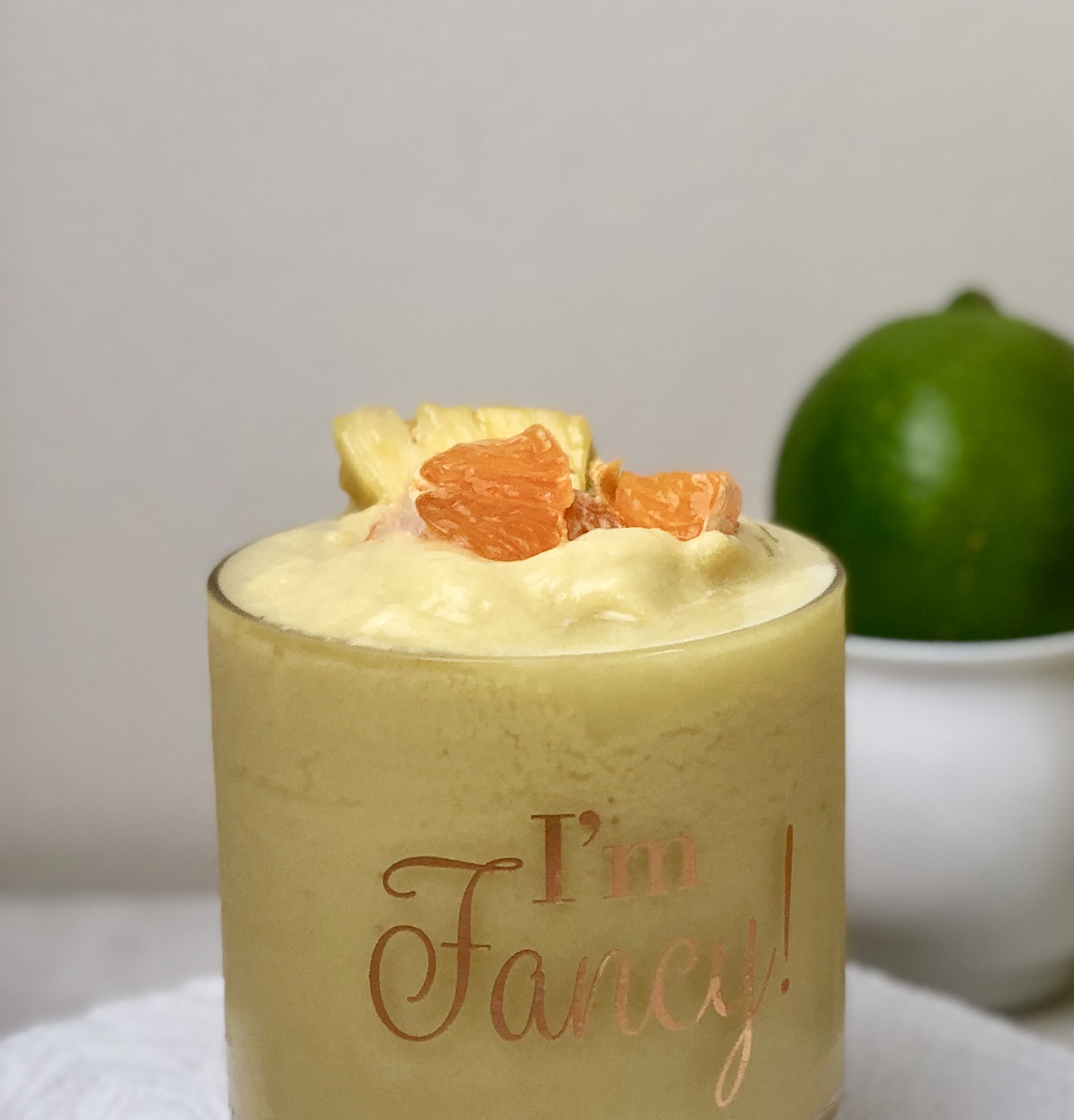 This Perfect Pineapple Margarita Smoothie is a fun twist to getting the taste of margarita without the alcohol. It’s incredibly refreshing and light. The smoothie texture was derived from the avocado and peanut butter. A pinch of salt added to the margarita flavor. This is a dairy free smoothie but you can certainly try adding non-fat yogurt to give it additional texture. With fewer than 200 calories for a 16 ounce serving, this smoothie has a high concentration of vitamin C and other important vitamins and minerals.