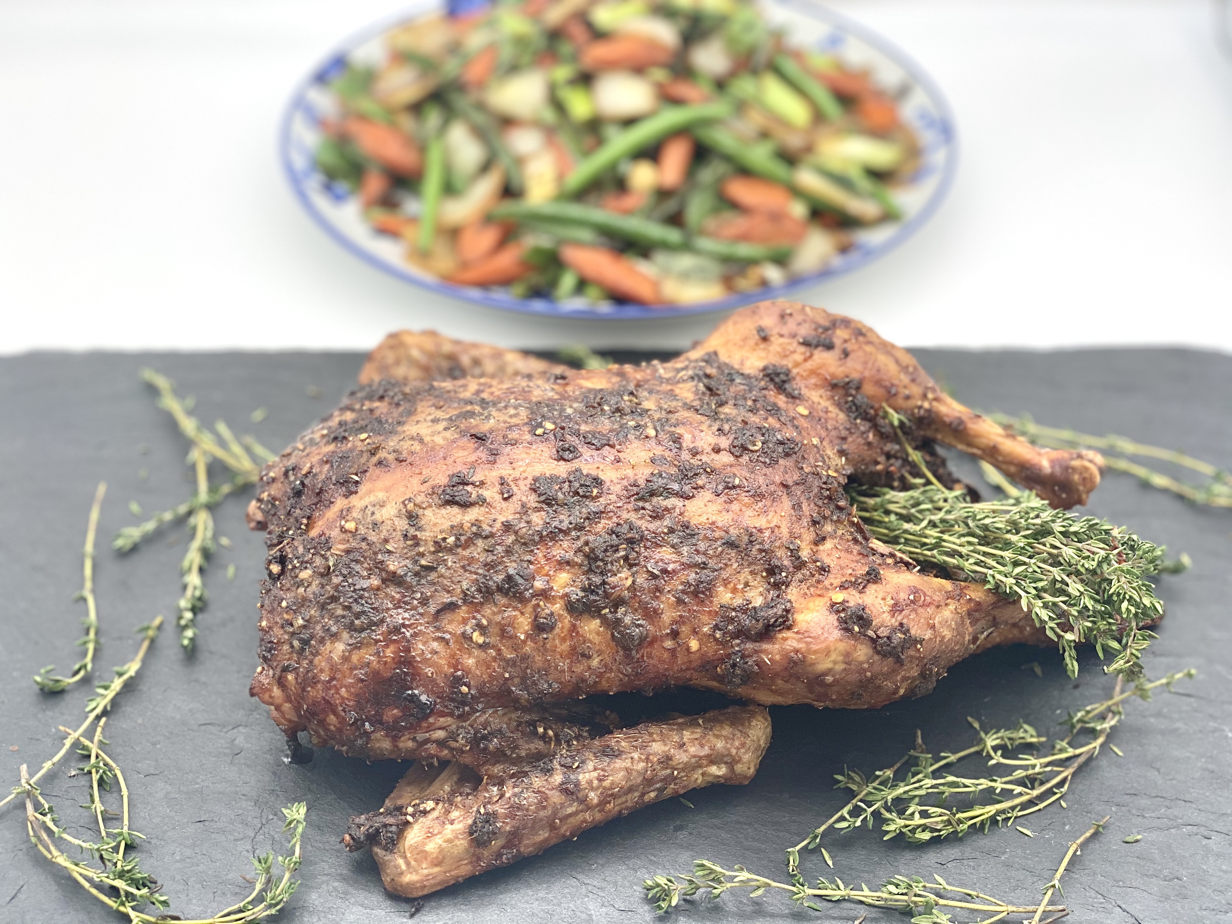 Undoubtedly, duck is our favorite poultry; the meat is naturally rich in flavor. It’s always a treat whenever I make it. This is not your typical crispy skin roast duck, however the meat is so tender and the sesame soy marinade gives it a rich mouthwatering taste. What’s also beautiful about this recipe, it does not require any overnight marinating – the slow roasting or baking allows the marinade to permeate through the meat. I usually serve this with a quick and easy stir fry of vegetables. I hope you will make this easy, brilliantly flavored recipe and enjoy it as much as we do. Happy cooking!